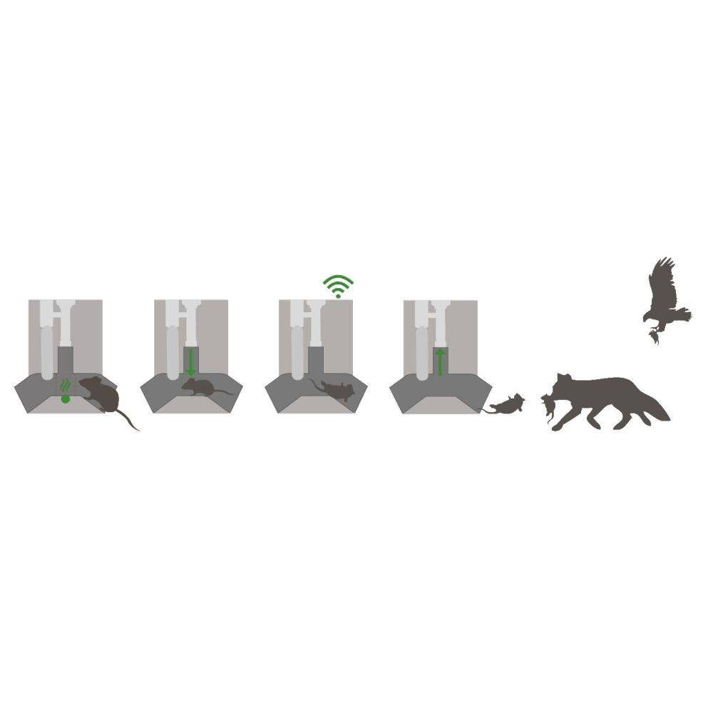 Sobald ein Nagetier durch den speziell gestalteten Eingang die Falle betritt, wird es von einem ungiftigen Köder angelockt. Sensoren erkennen das Tier und aktivieren eine CO₂-Patrone, die einen pneumatischen Kolben auslöst – dieser tötet das Tier sofort durch Druckluft. Jede CO₂-Patrone reicht für bis zu 80 Tötungen. Die Falle bereitet sich danach automatisch auf den nächsten Fang vor.