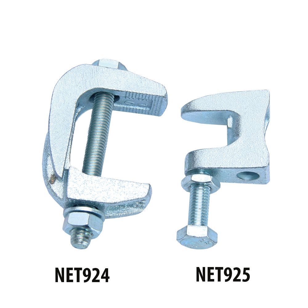 Brückenklemmen aus verzinktem Stahl zur Befestigung von Spanndrähten an großen Trägern, wie sie zum Beispiel an Brücken vorkommen. Die Brückenklemmen werden mit dem Schraubbolzen fixiert, somit ist kein Bohren erforderlich.