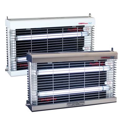 Freihängendes Gerät mit 360° rundum Abdeckung, ideal für produzierende und gewerbliche Bereiche der Lebensmittelindustrie. Die Population kleinerer Fliegen steigt auf und setzt so Arbeitsplätze und Ansehen in Gefahr. Das doppelseitige Chameleon® 2x2 schützt große offene Bereiche und fängt Fluginsekten aller Größen. Genau die kleinere Insekten sind diejenigen, die leicht der herkömmlichen Geräten entgehen können. Die Chameleon® Geräte innerhalb dieser Reihe verwenden austauschbare Röhre und Klebeflächen und reduzieren damit die Lagerhaltungskosten.
