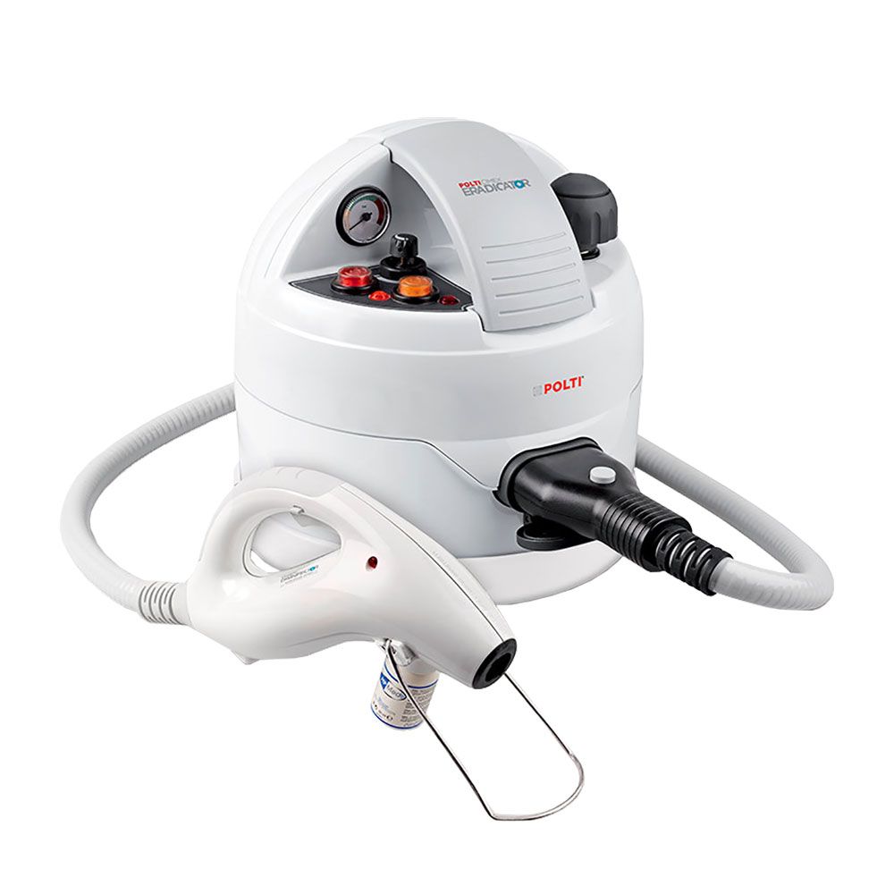 Hochmodernes Heißdampfgerät zur giftfreien Bekämpfung von versteckt lebenden Insekten, insbesondere von Bettwanzen, Flöhen und Schaben. Durch den im Gerät erzeugten bis zu 180°C heißen "trockenen" Wasserdampf werden alle Entwicklungsstadien (einschließlich der Eier) binnen Sekunden 100% sicher abgetötet. Behandelte Oberflächen trocknen innerhalb von 30-60 Sekunden vollständig ab. Der Kessel hat ein Fassungsvermögen von 2 Liter. Um Kalkrückstände zu vermeiden vorsorglich Entkalker (Kalstop FP 2300) verwenden, alternativ entmineralisiertes Wasser (KEIN destilliertes Wasser) und Leitungswasser 1:1 mischen. Zusätzlich kann das Produkt HP med Sanitizer zur Desinfektion und Geruchsverbesserung eingesetzt werden. Das kleine Fläschchen wird einfach an den Handgriff montiert. HP med Sanitizer verbessert nicht die Wirkung der Bekämpfung.