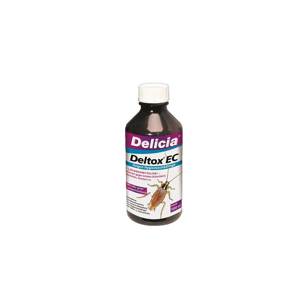 Deltox® EC ist frei von Lösungsmitteln. Durch Verdünnung mit Wasser entsteht eine stabile, anwendungsfertige Emulsion zur Bekämpfung von Hygieneschädlingen (z.B. Schaben, Ameisen, Heimchen, Silberfischchen, Wanzen, Fliegen usw.). Die Wirkstoffkombination gewährleistet sowohl eine sofortige Wirkung mit Austreibeeffekt als auch eine Langzeitwirkung von 6 bis 8 Wochen. Die Wirkungsdauer kann durch alkalische Untergründe wie z.B. Kalkmörtel oder Kalkanstriche beeinträchtigt werden.