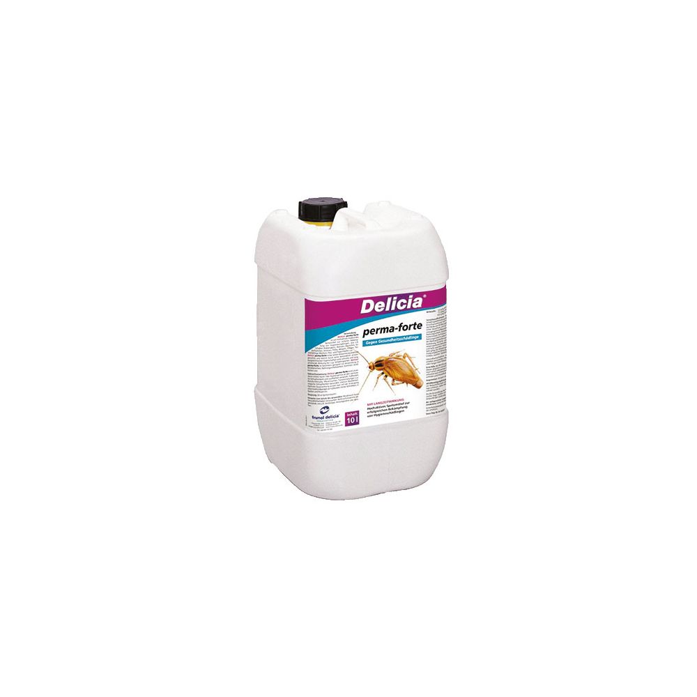 Eine gebrauchsfertige, praktisch geruchlose und materialverträgliche Lösung zur problemlosen Bekämpfung von z.B. Schaben, Wanzen, Heimchen, Silberfischchen, Ameisen, Pelz- und Teppichkäfern in Klinikbereichen, Nahrungsmittelwerken, Küchen, Kantinen, Wohnungen usw. perma-forte gewährleistet durch die Wirkstoffkombination sowohl eine sofortige als auch eine Dauerwirkung von mehreren Wochen.