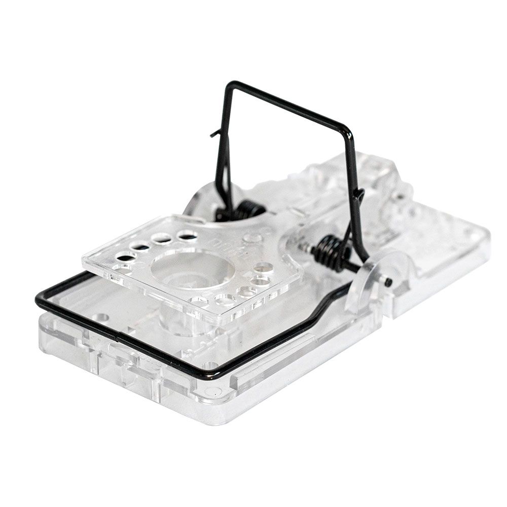 Wie auch die Standard-Version ist auch die transparente Falle aus robustem Kunststoff und hochwertigem Stahl gefertigt und mit präzisen Federn bestückt.