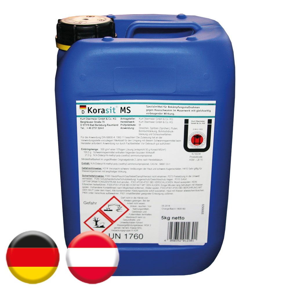 | Dosierung | Streichen, Fluten, Schäumen, Bohrlochbehandlung (druckloses Bohrlochverfahren; Bohrlochdruckinjektion) Aufwandmenge: 50 g Konzentrat pro Quadratmeter für die Oberflächenverfahren bzw. 3 kg pro Kubikmeter im Bohrlochverfahren. Es wird eine 8 – 14%ige wässrige Lösung empfohlen |