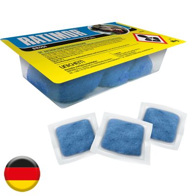 Die Paste ist temperaturbeständig und auch für Bereiche mit hoher Feuchtigkeit bestens geeignet. Jedes Schälchen enthält 60 g blaue Köderpaste welche anwendungsfertig platziert werden kann, nachdem die Schutzfolie entfernt wurde. Jedes Sachet enthält 15 g blaue Köderpaste welche mit Hilfe von Köderstangen einfach und sicher in Köderstationen ausgebracht werden können.