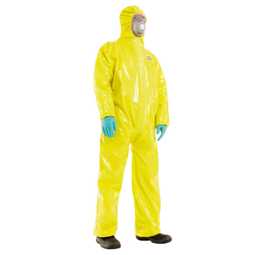 "Spaceseal" Versiegelung, keine Nähte, dadurch verbesserter Schutz mit einer transparenten Blende über dem Reißverschluss, die das Eindringen von Substanzen verhindert. Der Schutzanzug entspricht den europäischen Richtlinien.