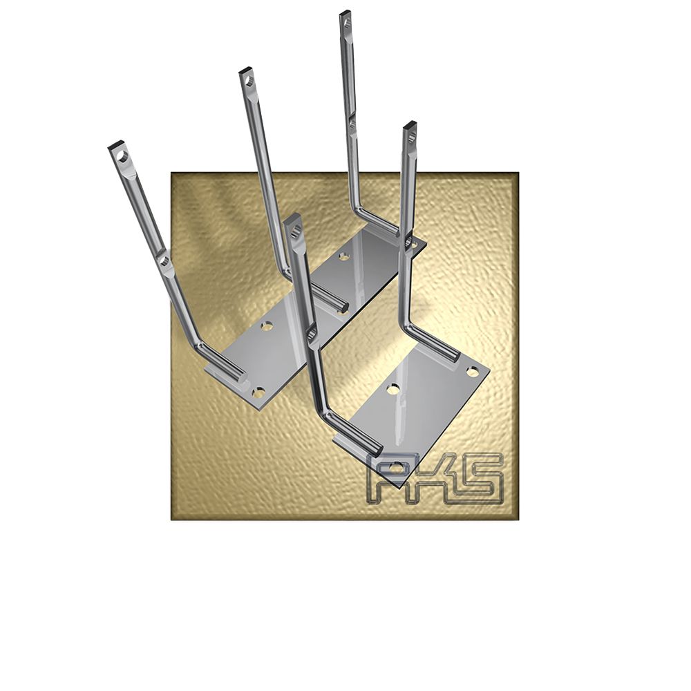 Die Trägerelementbasis ist aus Edelstahl gefertigt. Die Pins sind aus Edelstahl, Werkstoff-Nr.1.4301, hergestellt. Die Trägerelemente sind in verschiedennen Ausführungen erhältlich (1-fach bis 11-fach). Alle angegebenen Trägerelemente verfügen über einen Unterflugschutz.
