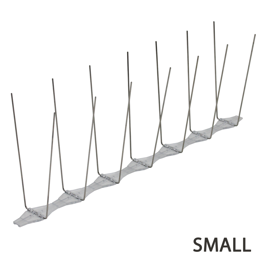 VOLASTOP SMALL ist sind Vogelabwehr-Spikes der ECOBIRDS-Produktreihe. Die Spikes sind auf einer 33 cm langen Basis aus Polycarbonat strukturiert, das mit UV-beständigen Zusatzstoffen behandelt wurde. Jede Basis verfügt über 14 Stifte (entspricht 42 Stiften pro Meter) mit stumpfen Spitzen aus federhartem Edelstahl. Sowohl die Länge der Stifte als auch die Breite der Vorrichtung machen dieses Modell besonders effektiv gegen die Zielschädlinge.