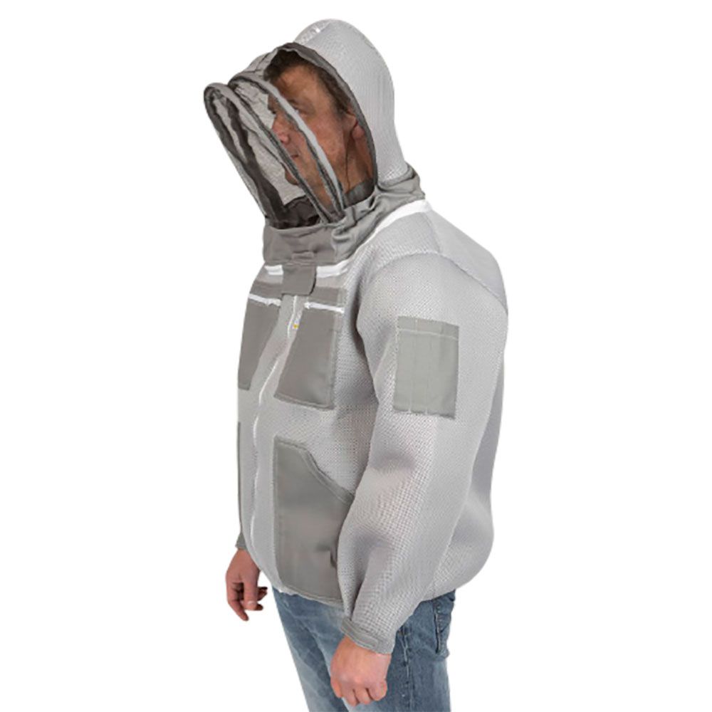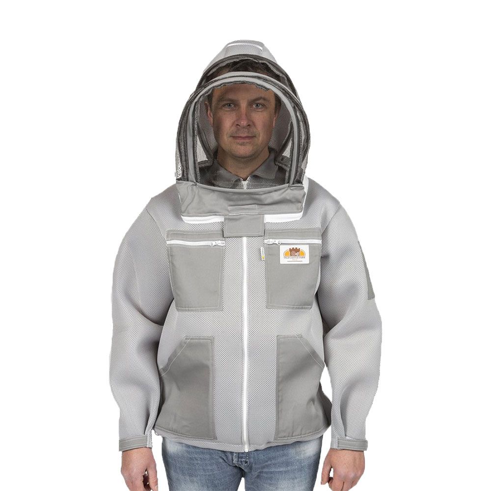 Eine hochwertige graue Imkerjacke, die mehr Schutz bietet als herkömmliche Imkerbekleidung.
